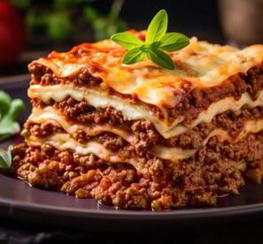 Monte camadas alternando massa, molho bolonhesa, molho branco e queijo.