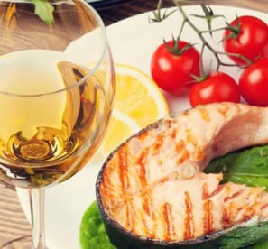 Vinhos brancos: Sauvignon Blanc, Pinot Grigio ou Riesling.
