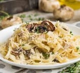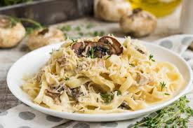 Modo de preparo: Refogue o frango e os cogumelos, adicione creme de leite e misture ao macarrão cozido. Finalize com parmesão.