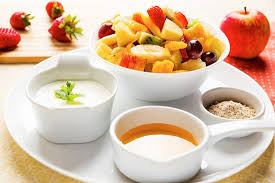 Modo de preparo: Misture as frutas picadas, adicione iogurte por cima e finalize com um fio de mel.