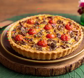 Ingredientes: Massa pronta para quiche, ovos, creme de leite, queijo ralado e espinafre refogado.