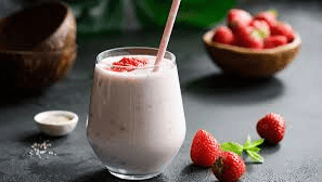 Bata todos os ingredientes no liquidificador até obter uma textura cremosa. Sirva gelado.