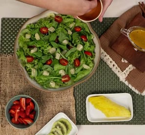 Molho: Misture mel, mostarda Dijon, azeite e um toque de limão.
